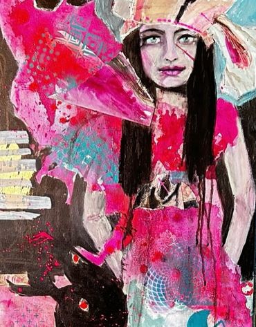 My art style is Modern Expressionism and I use mixed media items during my painting process. When I want more depth and texture in my paintings I will use collage and different mediums. Next, I use pastels, spray paint, acrylic inks, and acrylic paint for creating many layers. Then I will use markers, oil pastels and oil paint. It is a process that is fun, fast, and liberating. The creative process is very intuitive, so emotions come through onto the canvas in color. I love the feelings that different colors evoke, so naturally my art is bright, bold and vivid. It may elicit a feeling to you and something completely different to someone else. I hope you will revel in the art.